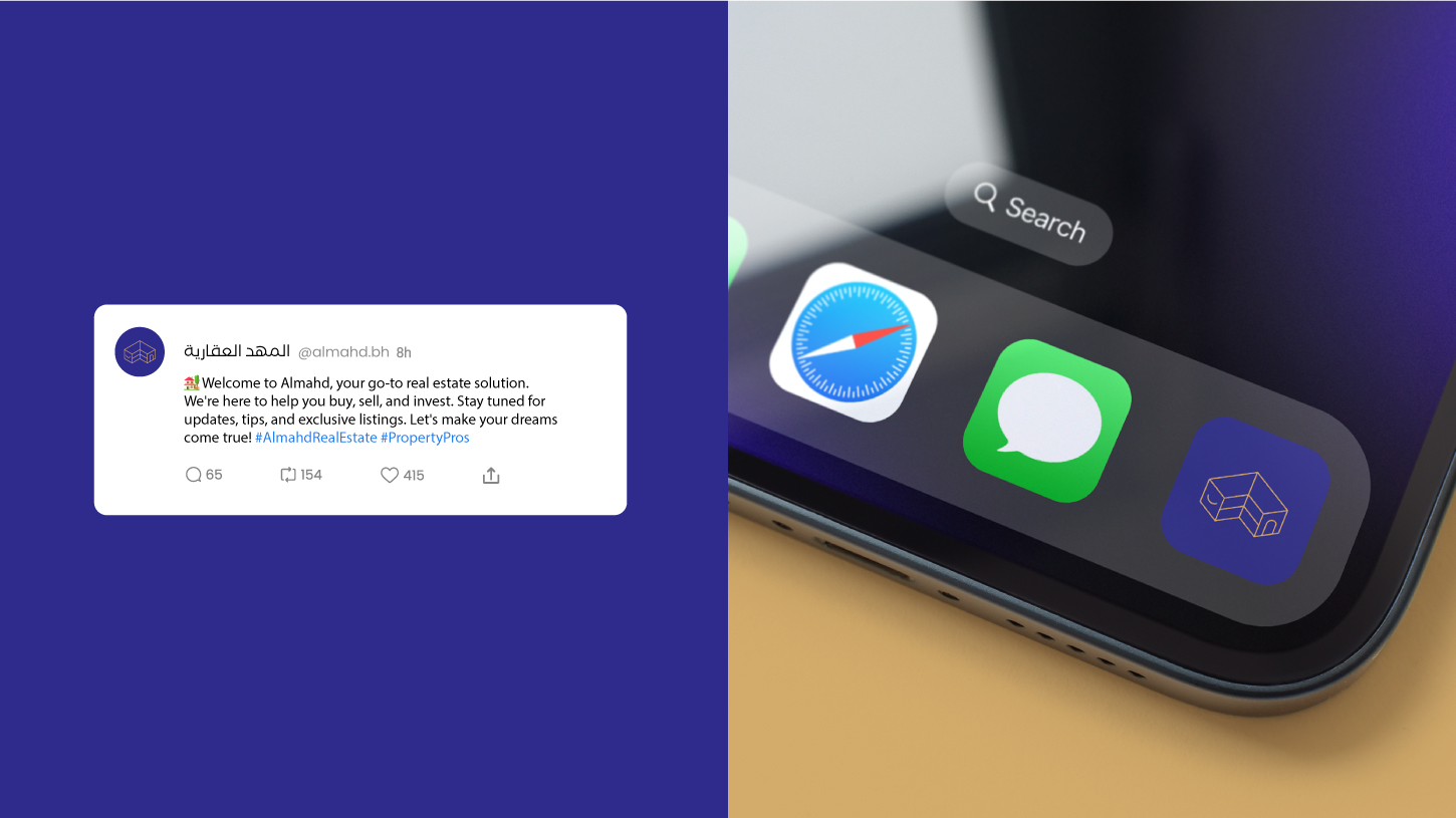 We developed a distinctive brand identity for Al Mahd Real Estate, a leading Bahraini firm. This included a unique brand icon that embodies trust and innovation, alongside custom English and Arabic typefaces. The design reflects modernity while honoring Bahraini heritage, enhancing the firm’s market presence and connection with its diverse clientele.